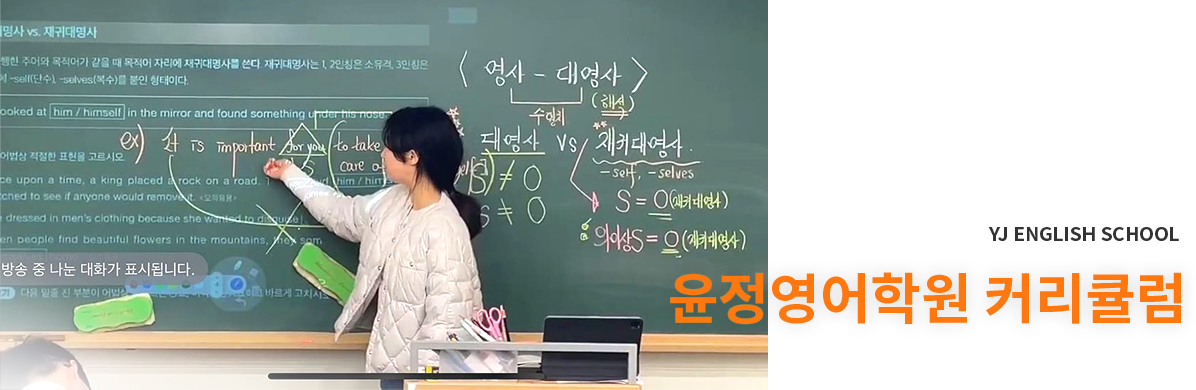 칠판 강의 수업으로 진행되며, 개별적 피드백을 진행하고 매일 단어 재시험 관리 철저하게 이루어 지고 있습니다.